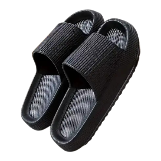Imagine wearing slippers that feel super soft and cozy, like you're walking on clouds. These special slippers gently hug your feet and give them a relaxed and happy feeling.